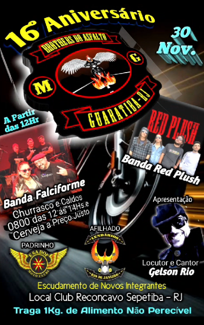 « Todos Eventos Este evento já passou. 16º Aniversário Brothers do Asfalto novembro 30, 2024 - 12:00 « 6º Aniversário Piratas de Paraty MC 4º Aniversário Filhos da Guerra MC » Adicionar ao calendário Google Agenda iCalendar Outlook 365 Outlook Live Detalhes Data: novembro 30, 2024 Hora: 12:00 - 23:30 Categoria de Evento: Aniversário de MC ou MG Organizador Brothers do Asfalto Local Club Reconcavo Sepetiba Rio de Janeiro, Rio de Janeiro Brazil + Google Map